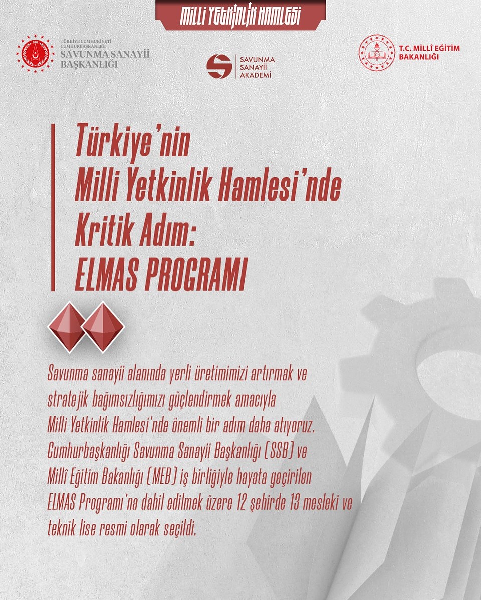 GEBKİM MTAL öğrencileri, ELMAS Programı kapsamında savunma sanayisi kuruluşlarıyla doğrudan temas kuracak, güncel sektör ihtiyaçlarına göre hazırlanan özel bir müfredatla eğitim görecek ve gerçek üretim süreçlerinde uygulamalı deneyim kazanacak. Bu sayede mezun olduklarında, Türkiye’nin stratejik sektörlerinde istihdam edilebilecek nitelikli ve donanımlı teknik personel olarak yetişecekler.