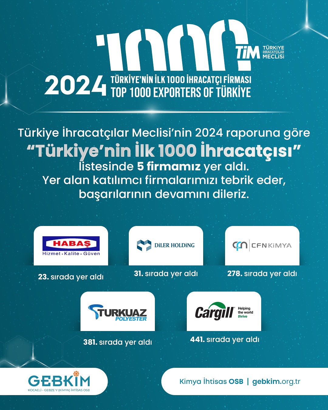 Türkiye İhracatçılar Meclisi’nin 2024 raporuna göre “Türkiye’nin İlk 1000 İhracatçısı” listesinde yer alan katılımcı firmalarımızı tebrik eder, başarılarının devamını dileriz.